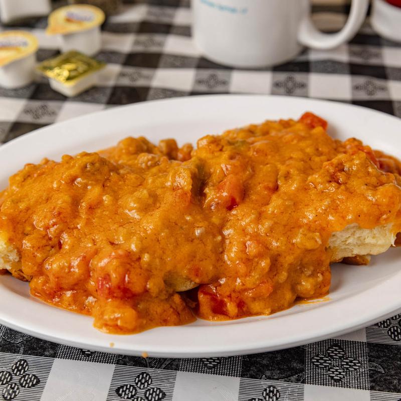 With choice white or tomato gravy